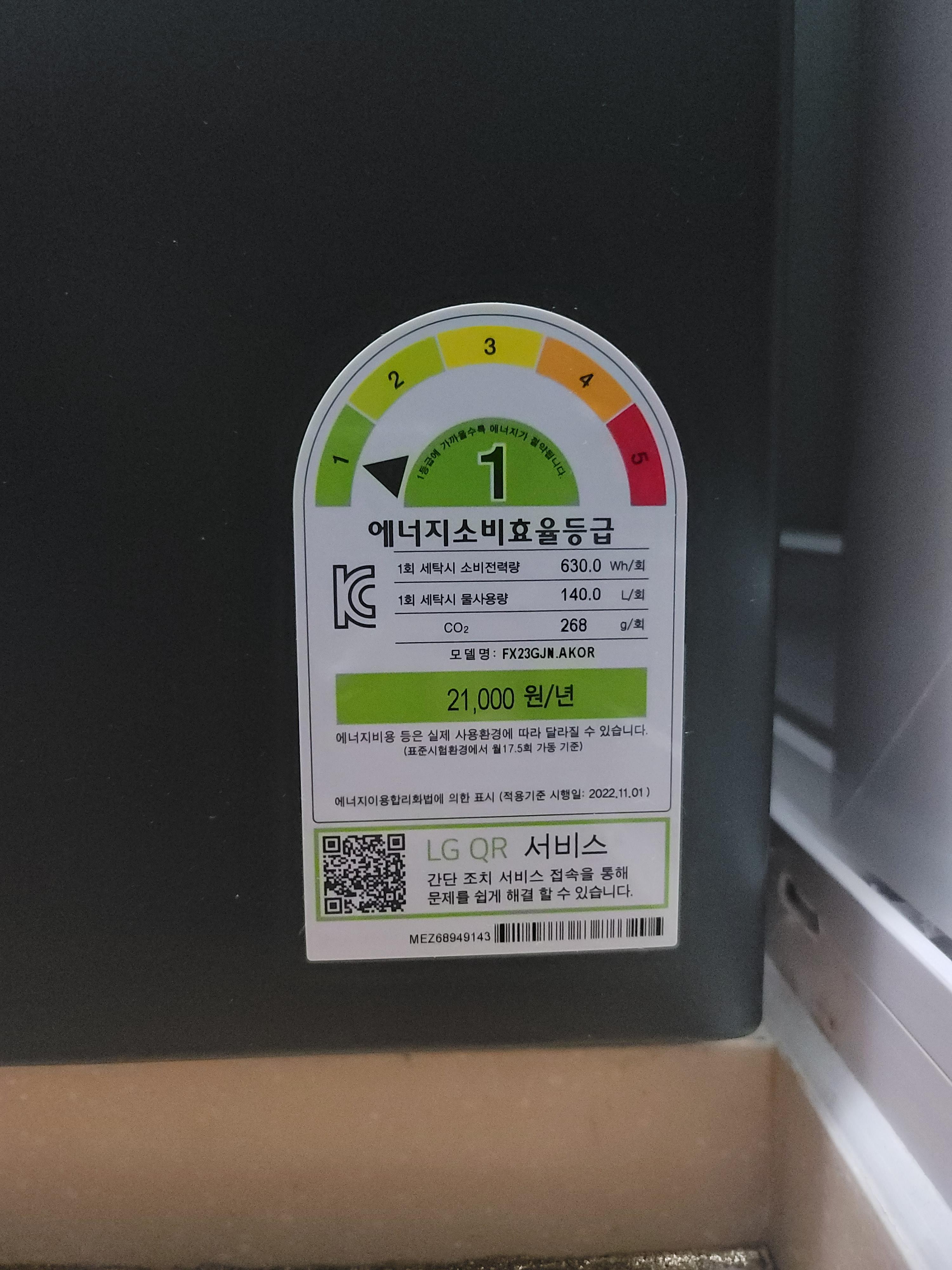 세탁기 : 1등급 (21,000원/년)